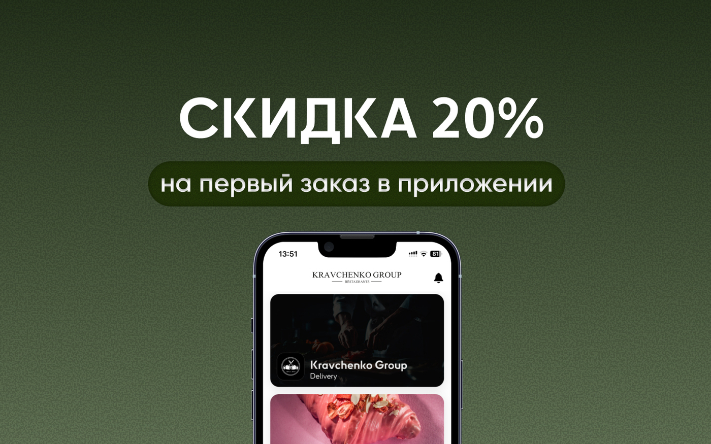 Скидка 20% на первый заказ через приложение